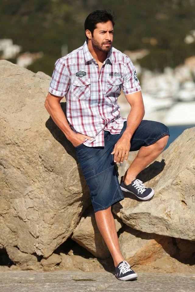 - Man’s World Kurzarmhemd im modischen Karodessin